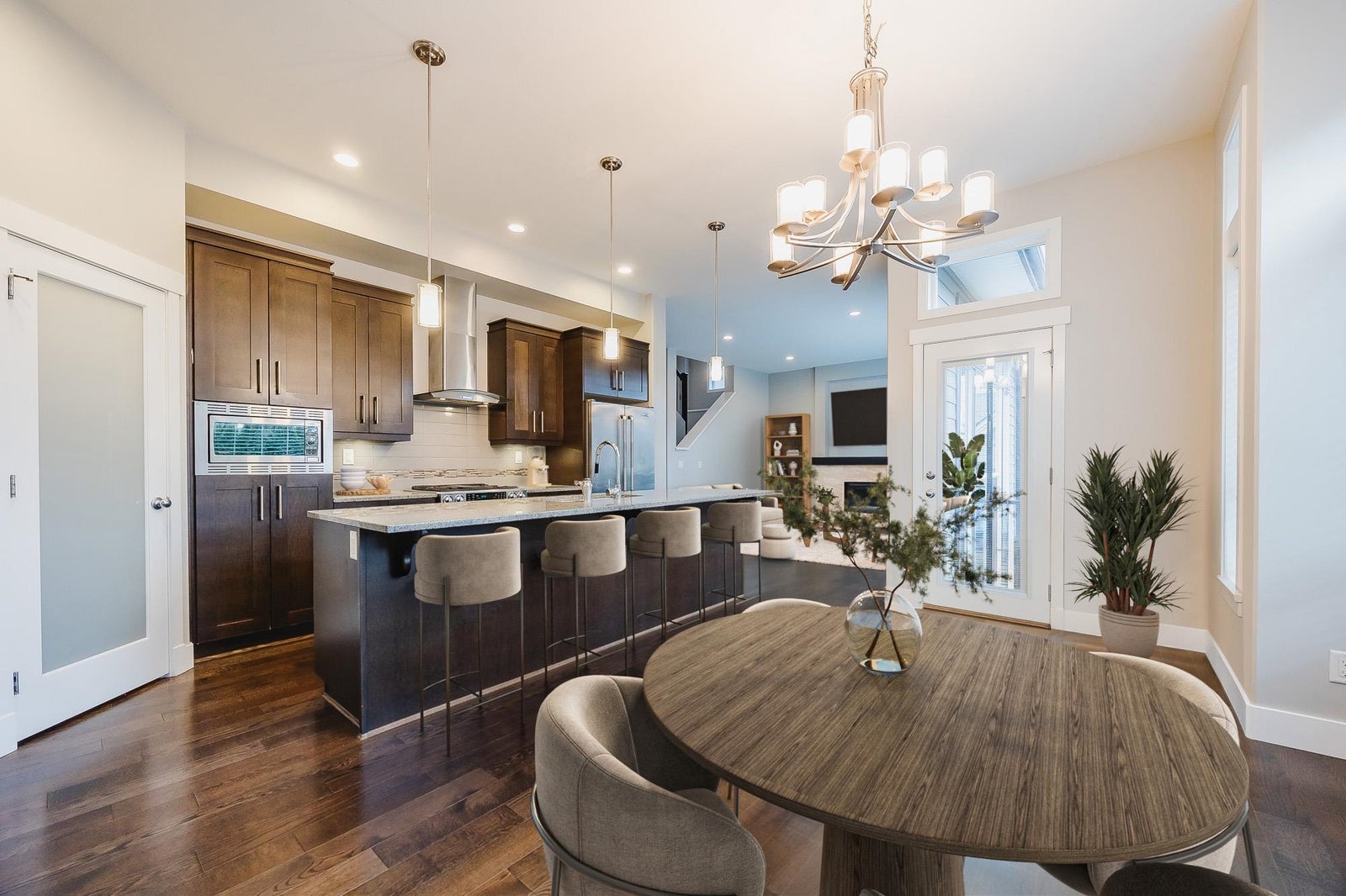 This beautiful Foxridge home in Morgan Heights offers 3,200 sq. ft. of luxurious living with 5 bedrooms and 4 bathrooms. The open floor plan features vaulted ceilings, hardwood floors, a heat pump with air conditioning, and a gourmet kitchen with custom cabinets, granite counters, and stainless steel appliances. The finished basement includes 2 bedrooms and a separate entrance, perfect for an in-law suite. The backyard is surrounded by a lush summer garden with vibrant flowers and cherry blossoms .Ideally located within walking distance to Southridge Private School, Pacific Heights Elementary, Grandview Heights Aquatic Centre and Morgan Crossing shops and restaurants.